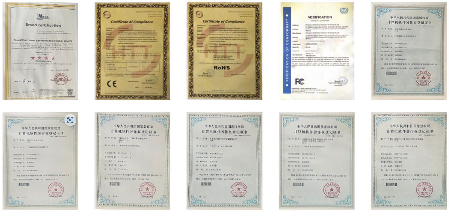 Our products have passed multiple authoritative certifications to ensure quality and safety, providing you with reliable assurance. Such as CE RoHS certifications. Besides, 7 invention patents, 7 utility model patents