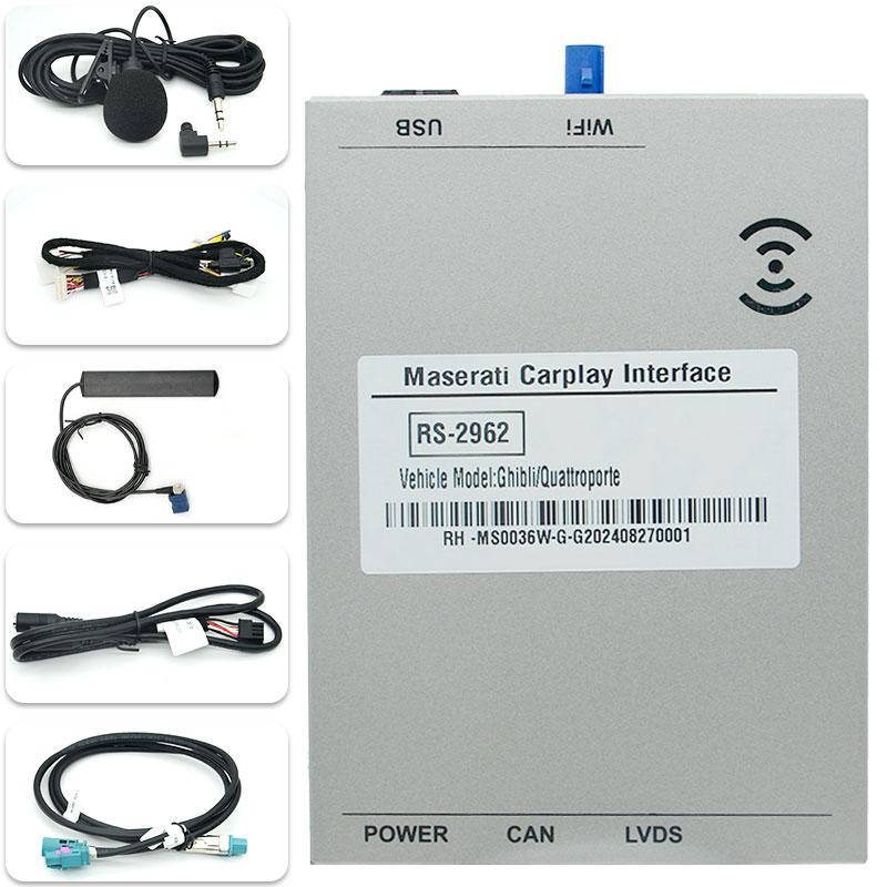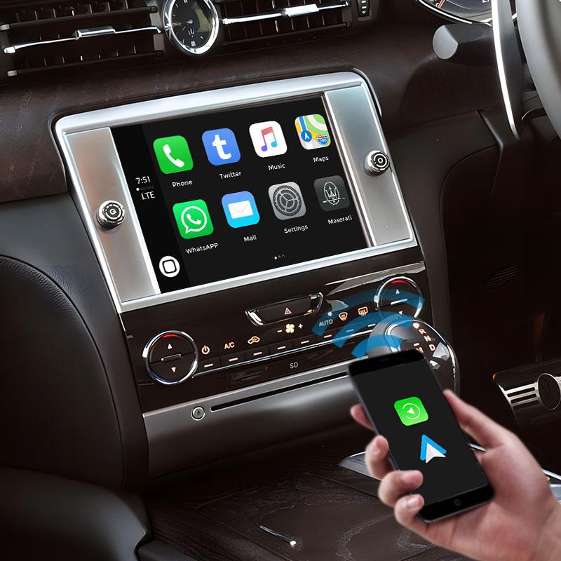 This wireless Android CarPlay interface is suitable for Maserati car, support bluetooth pairing,and WiFi transmission, total OEM buttons control, also support for iOS mirroring for Apple iPhone.