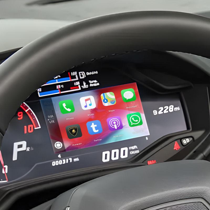 If you drive a classic Lamborghini car, choose our smart Wireless CarPlay Adapter, instantly connect to maps, streaming music and podcasts, messaging, and more through the touchscreen. It works with Apple CarPlay and Android Auto for Lamborghini Huracan 6.5-inch screen makes it easier to see.